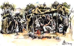 যাতনা কি চন্দ্রমোহন স্বয়ং অনুভব করেন না? হৃদয় নিংড়ে বিষণ্ণ রক্তপতনের টুপটুপ ধ্বনি। জন্মদান করেন বলেই যে পিতার নাম জনক ! চিকন সূঁচের ফুটোয় দাগ টেনে যায়, কোন কুঠুরির দেওয়ালে কে দেখতে পায় ! তবে তিনি কষ্টটাকে চিবুতে জানেন, ছ্যাঁচা পান যেভাবে জিভে ঠেলে দাঁতের এ গোড়ায় ও গোড়ায় ঘুরিয়ে ঘুরিয়ে নিতেন, তেমনই