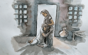 নীলু সেটা শুনতে পেলো না । তার চোখে স্নেহলতা, তার আদরের স্নেহ, এক নতুন রূপে । কেমন সে রূপ ? দেহে মনে আকাশের মতো শূন্যতা, তবু যেন অপরূপ প্রতিমা ! অযত্নের চুলের বিন্যাস, ক্লান্তির ময়লা ঢাকা মুখ, আ-তেলা খসখসানির ছিটে,হনুদুটি ঠেলে উপরে উঠেছে, মুখ গলা ভেঙে বুক শীর্ণ